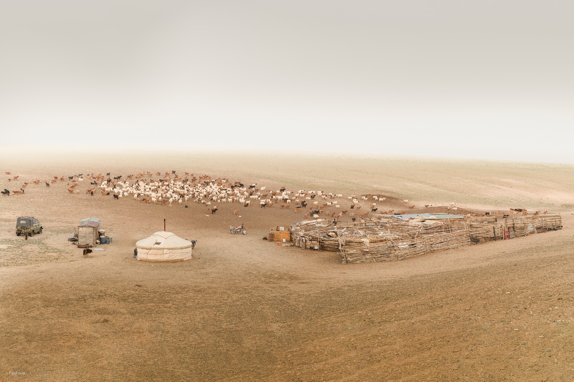 This series of photographs taken in Mongolia captures the current state of the Mongolian steppe. Once among the world's largest undisturbed grasslands, the Mongolian Plateau now faces unprecedented challenges. According to a report by the United Nations Environment Programme (UNEP), Mongolia's steppe is degrading at an alarming rate due to climate warming and increased human activities. This not only threatens local biodiversity but also has profound implications for the global climate. The international community must unite in efforts to protect and restore grasslands in countries like Mongolia. This is not only crucial for safeguarding local ecosystems but also for maintaining global climate stability. I have been photographing desertification of the Mongolian grasslands since 2023 and will continue to follow this issue.
